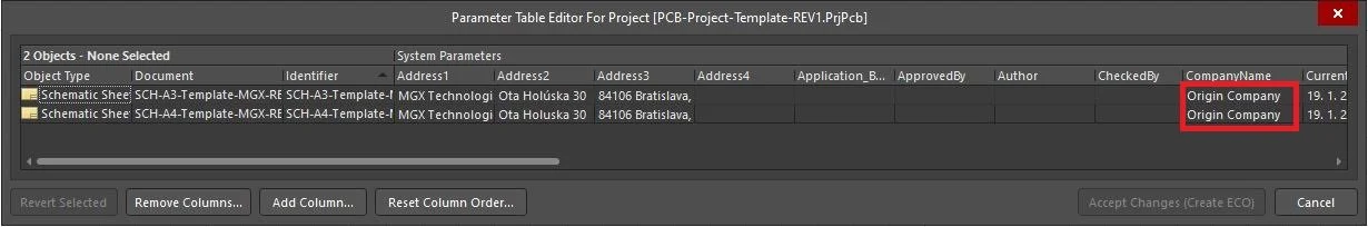 The challenge to change Parameter CompanyName in Altium Designer