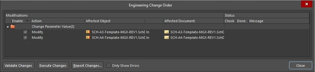 Next popup window Engineering Change Order appears: